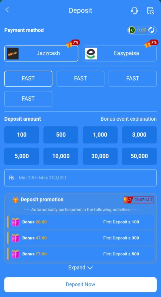 To participate in reward-based gameplay, users need to deposit funds into their wallet.